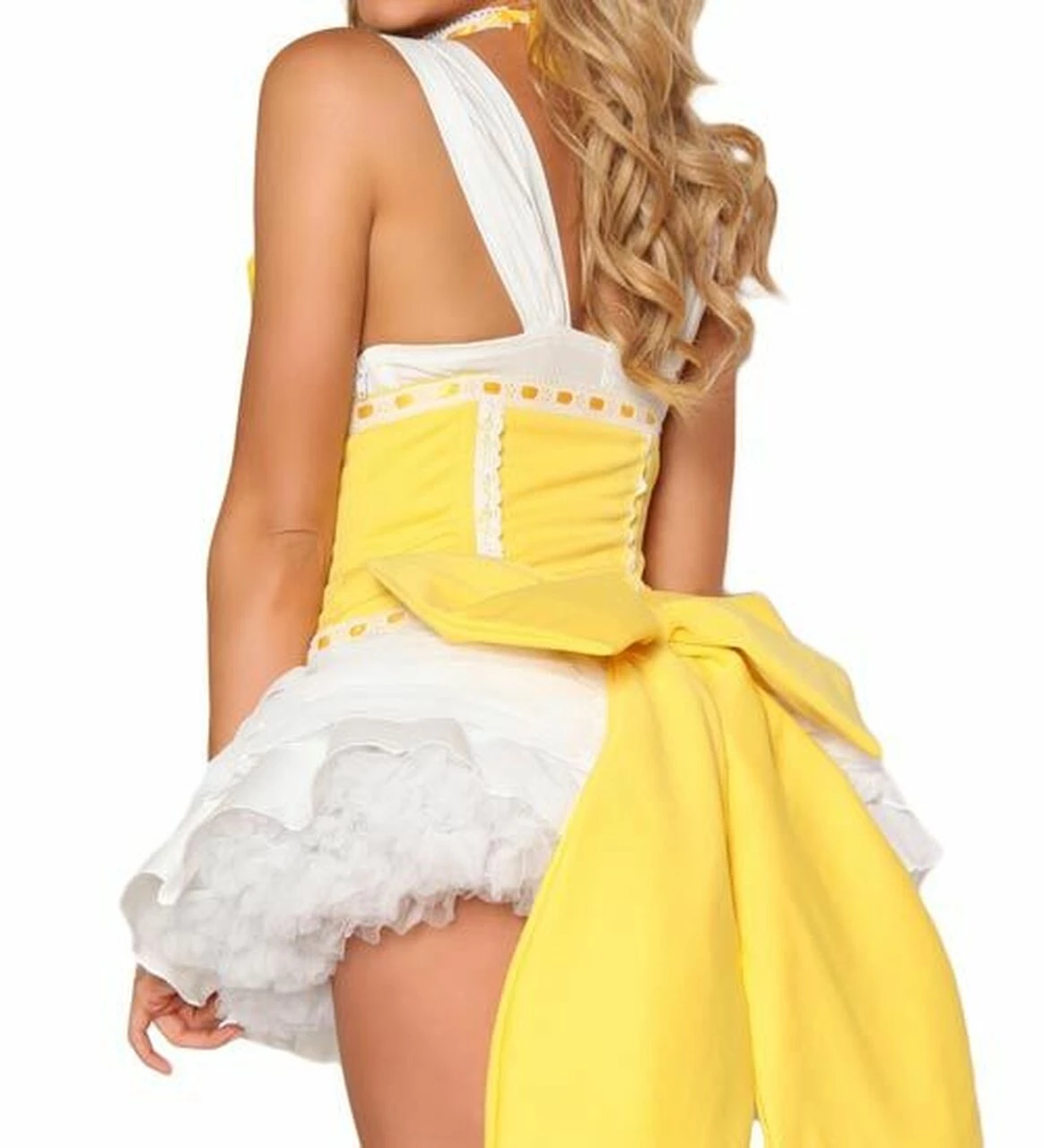 This Godilocks is going to be welcome in any bed without any problems. With an innocent white dress topped with yellow bows, this dress also features a choker necklace that makes it look all innocence. Top it off with the yellow boned corset and the fact that it’s an ultra-mini skirt and you’ll be turning heads for a whole different reason. Don’t worry about the bed being too soft or too hard when you wear this costume, everything is going to be just right.