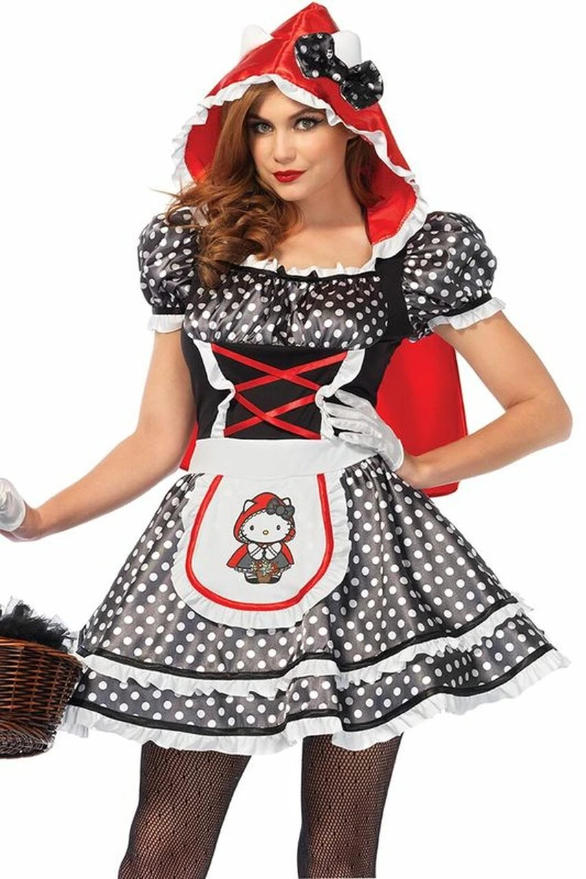 •  Sexy dress features puffy sleeves, lace-up bodice detail, and a fun Hello Kitty apron
