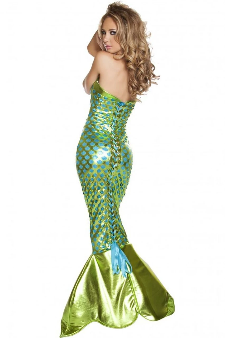 This Sexy Sea Creature costume includes a lace-up tube style dress with an attached mermaid tail.
