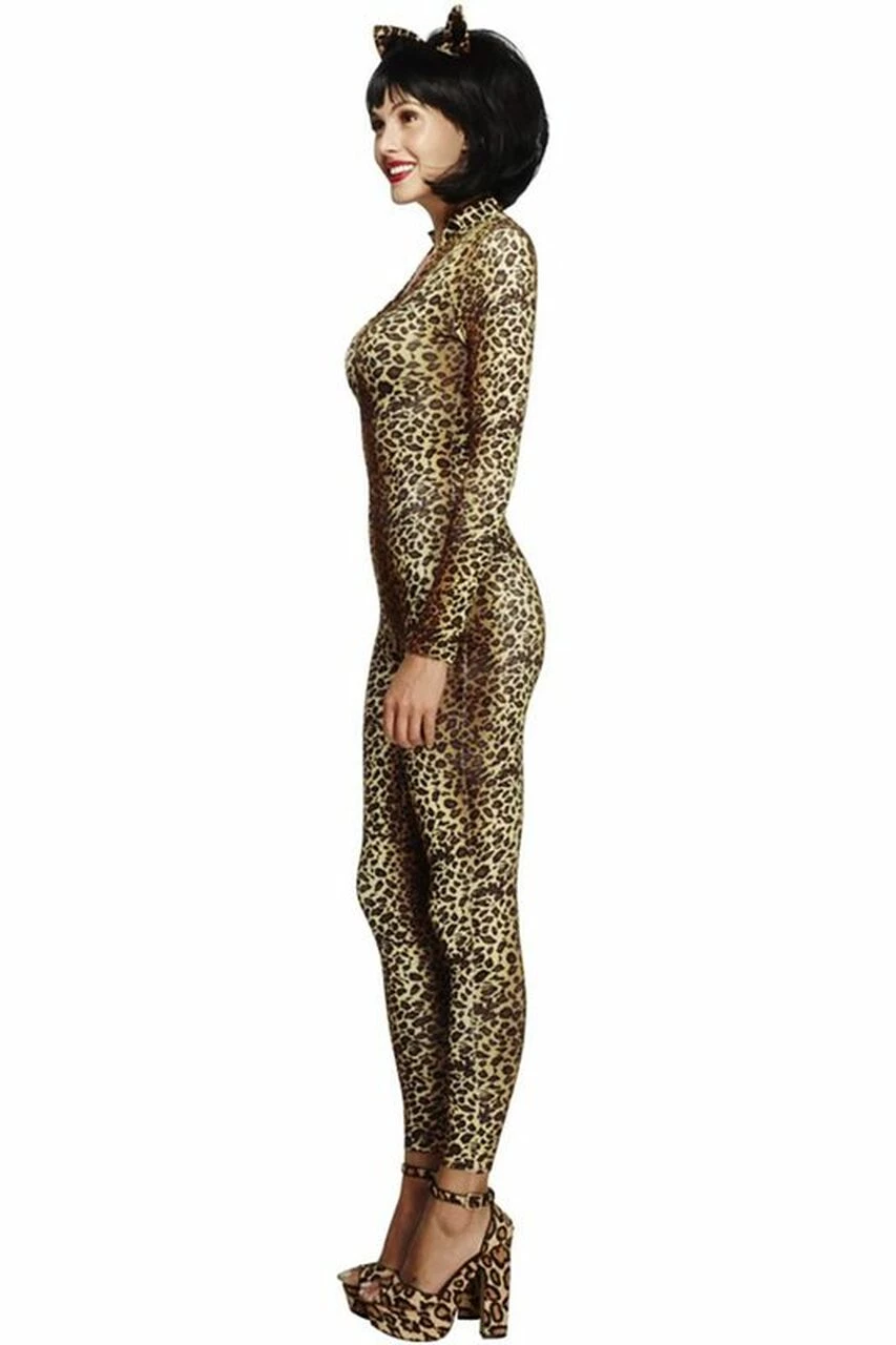 Everyone loves a cat… and it’s even truer for a sexy cat. This sexy and elegant whiplash leopard cat suit will keep everyone looking at you and wanting you! You will love this excellent seductive costume and is one you want to keep in your arsenal for many years. Wear it to the bar, a party or in the bedroom… you’ll be the highlight of the night. This is a two piece costume that includes a zip-up front cat suit that is leopard print and matching cat ears.